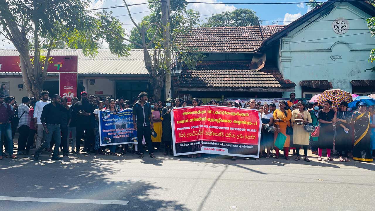 மாவட்ட செயலகத்தில் ஒருங்கிணைப்பு குழு கூட்டத்தில் ஜனாதிபதி கலந்து கொண்டிருந்த வேளை, வேலையற்ற பட்டதாரிகள் மாவட்ட செயலகத்திற்கு அருகில் தமக்கு வேலைவாய்ப்பு கோரி கவனயீர்ப்பு போராட்டத்தில் ஈடுபட்டனர்.