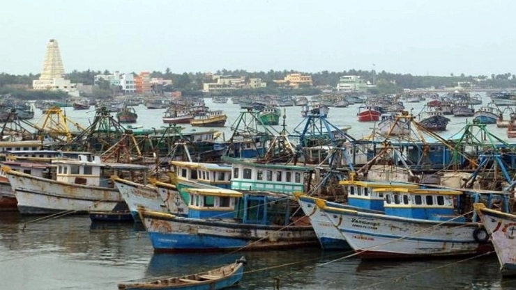 ராமேஸ்வரம் மீன்பிடி துறைமுகத்திலிருந்து நேற்று காலை 450 க்கும் மேற்பட்ட விசைப்படகுகளில் 5 ஆயிரத்திற்கும் மேற்பட்ட மீனவர்கள் மீன் பிடிக்க கடலுக்குச் சென்றனர்.