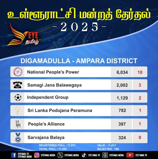 தேசிய மக்கள் சக்தி – 6,034 வாக்குகள் – 10 ஆசனங்கள்.