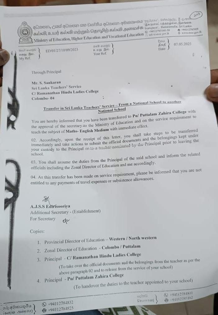 இந்நிலையில் மாணவி அம்சி விடயத்தோடு தொடர்புபட்ட குறித்த ஆசிரியர் உடனடியாக இடம்மாற்றம் செய்ய கல்வி அமைச்சு அறிவிப்பு விடுத்துத்துள்ளது.