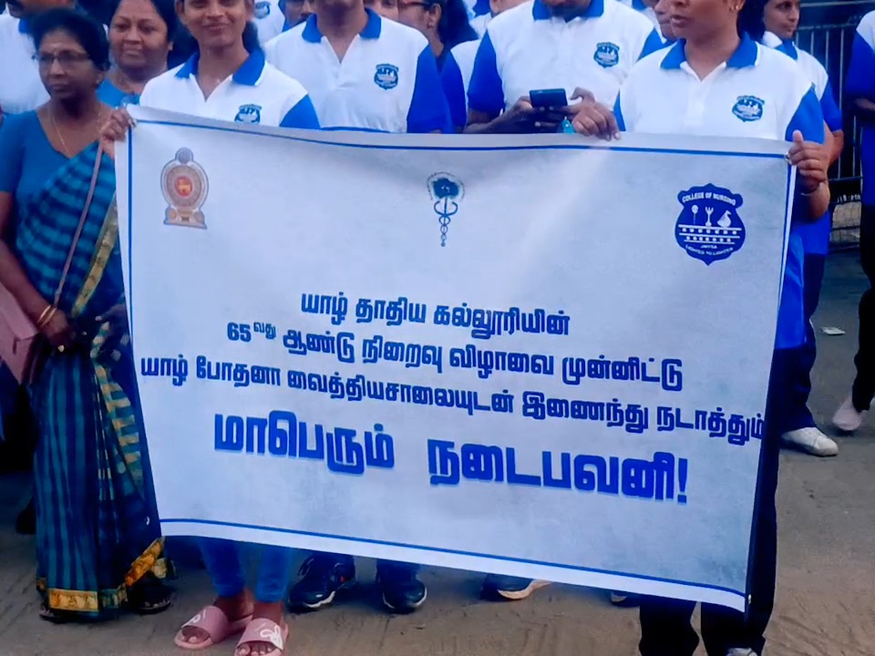 யாழ். தாதிய கல்லூரியின் 65வது ஆண்டு நிறைவு விழாவினை முன்னிட்டு யாழ். தாதிய கல்லூரியும் யாழ். போதனா வைத்தியசாலையும் இணைந்து நடாத்திய தாதியர்களின் நலனை மேன்படுத்தும் நடைபயணம் இன்றைய தினம் வியாழக்கிழமை நடைபெற்றது.