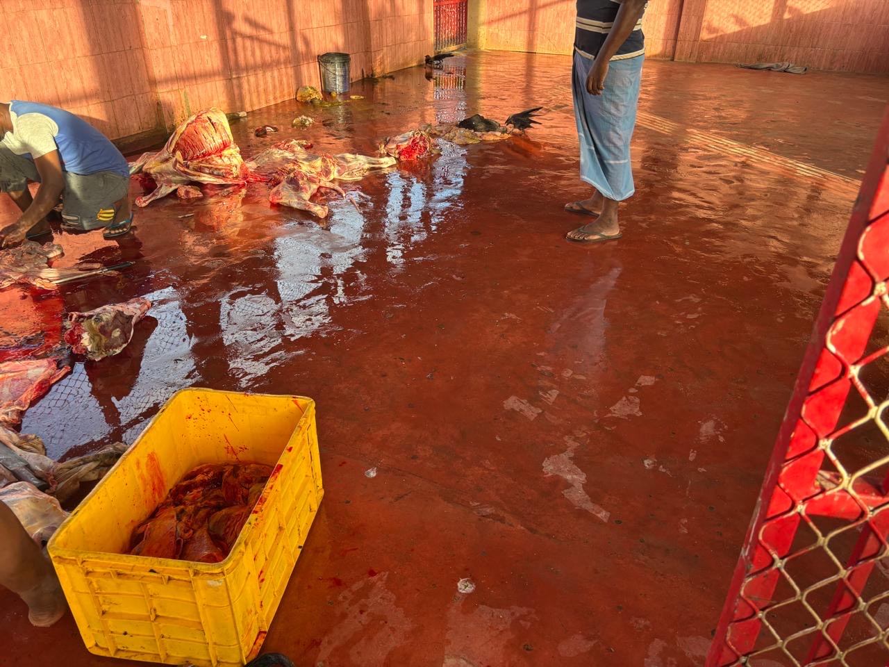 மன்னார் பொது சுகாதார வைத்திய அதிகாரி பணிமனை அதிகாரிகளுக்கு கிடைக்கப்பெற்ற முறைப்பாட்டை தொடர்ந்து மேற்கொள்ளப்பட்ட ஆய்வு நடவடிக்கையின் போது மன்னார் பள்ளிமுனை பகுதியில் அமைந்துள்ள மாடு அறுக்கும் நிலையமானது பல வருடங்களாக சுகாதார நடைமுறைகளுக்கும் அரச அறிவுறுத்தல்களுக்கு அமைய இயங்காத நிலையில் மன்னார் சுகாதார வைத்திய அதிகாரி மற்றும் மன்னார் பொது சுகாதார பரிசோதகர்கள் இணைந்து குறித்த நடவடிக்கையை மேற்கொண்டனர்.