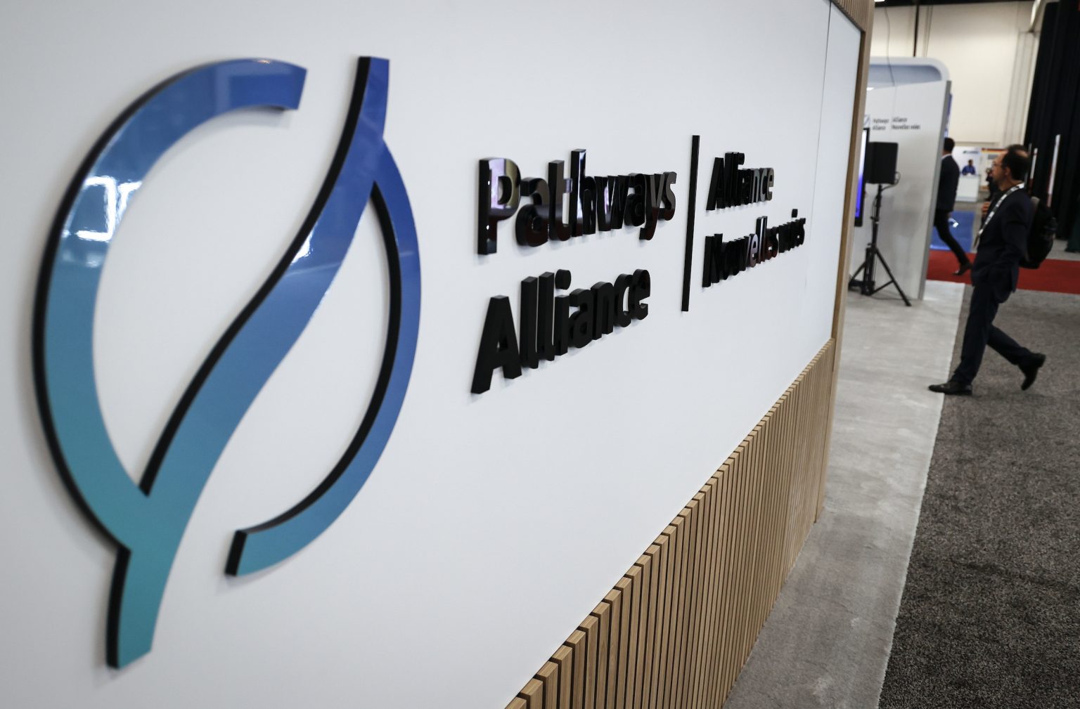 Pathways Alliance sign at the World Petroleum Congress in Calgary, Wednesday, Sept. 20, 2023. Jeff McIntosh/The Narwhal