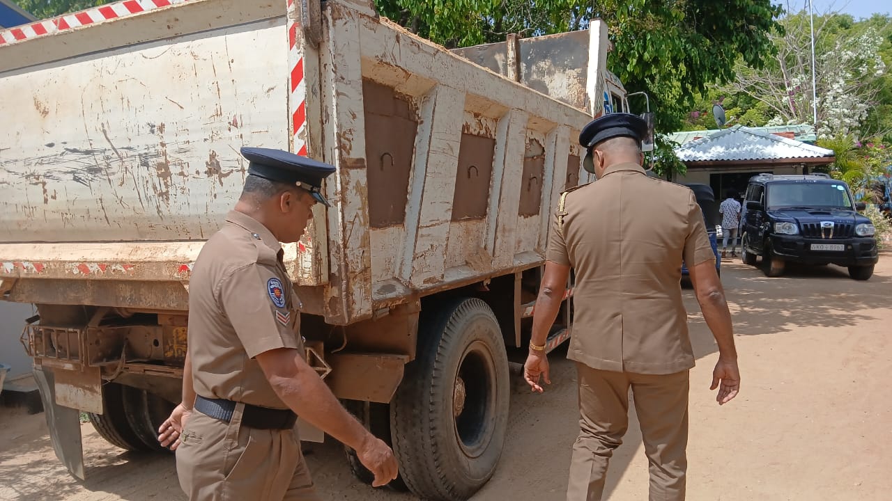 பொலிசாரின் சமிக்ஞையை மீறி சென்ற டிப்பர் மீது பொலிசார் துப்பாக்கி பிரயோகம் மேற்கொண்டனர். பொலிசாரின் துப்பாக்கி பிரயோகத்தில் டிப்பர் வாகனம் காற்று போன நிலையில் டிப்பர் வாகனத்தை விட்டு சாரதி தப்பியோடியுள்ளார்.