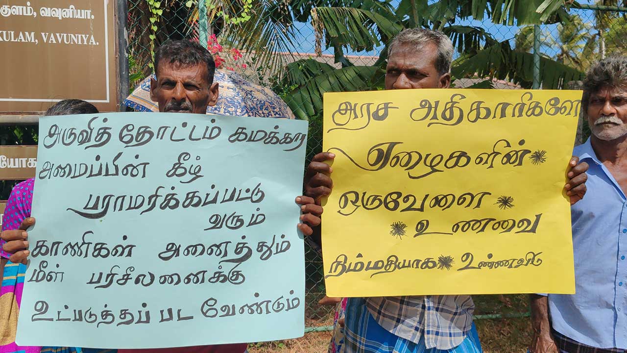 மேலும் கூலி வேலையினை மேற்கொண்டே எமது வாழ்வாதாரம் போகின்றது. அத்தோடு கடந்த காலத்தில் கிராம சேவையாளர் இடம் சென்றும் வயல் காணி தொடர்பாக நாங்கள் பதிவு செய்திருந்தோம். அதன் மூலமாக ஒரு சிலருக்கு வழங்கப்பட்டது. ஆனால் 20 வருடமாகியும் எங்களிற்கு கிடைக்கவில்லை. அத்தோடு அருவித்தோட்டம் கமக்கார அமைப்பை சேர்ந்தவர்கள் பல ஏக்கரில் வயல் காணிகளை பெற்று வயல் செய்கின்றனர். ஆனால் எங்களிற்கு எந்த வயற் காரணிகளும் கிடைக்கவில்லை எனவே எங்களிற்கு தருவதாக தெரிவித்த வயற்காணியினை தரவேண்டும் என தெரிவித்தனர்.