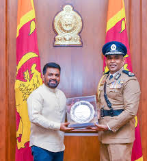 புதிய பொலிஸ்மா அதிபருக்கு ஜனாதிபதி தனது வாழ்த்துக்களைத் தெரிவித்ததோடு  ஜனாதிபதிக்கு அவர் நினைவுப் பரிசொன்றையும் வழங்கினார்.