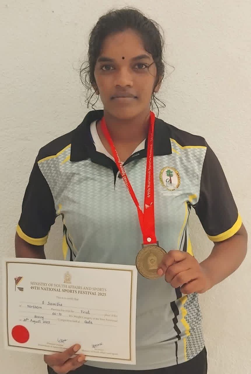 நேற்றய தினம் இடம்பெற்ற பெண்களிற்கான குத்துச்சண்டைப் போட்டியில் தேசியரீதில் முதலிடத்தைப் பெற்று இவ்வரலாற்றுச் சாதனையைப் புரிந்துள்ளார்.