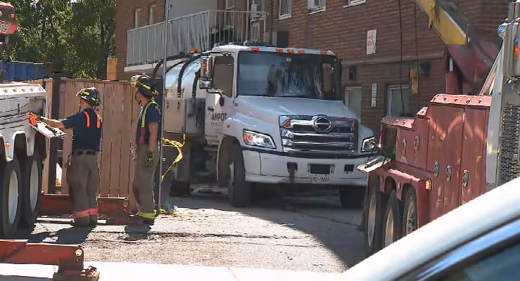 டொராண்டோ தீயணைப்புப்படையின் பல மணி நேரப் போராட்டத்திற்குப் பிறகு, அந்த கழிவுநீர் பாரவூர்தி வெற்றிகரமாகப் பள்ளத்திலிருந்து வெளியேற்றப்பட்டது.