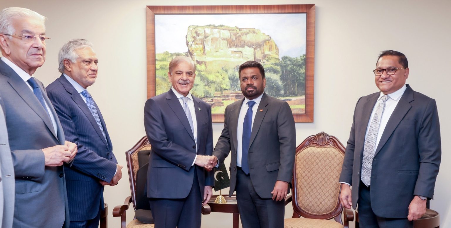 ஐக்கிய நாடுகள் சபையின் 80 ஆவது பொதுச் சபை அமர்வில் கலந்து கொள்வதற்காக அமெரிக்காவிற்கு விஜயம் மேற்கொண்டுள்ள ஜனாதிபதி அநுரகுமார திசாநாயக்க மற்றும் பாகிஸ்தான் பிரதமர் ஷேபாஸ் ஷெரீஃப் (Shehbaz Sharif) இடையேயான இருதரப்பு பேச்சுவார்த்தைகள் நியூயோர்க் நகரின் ஐக்கிய நாடுகள் சபைக்கான இலங்கையின் நிரந்தரப் பிரதிநிதி அலுவலகத்தில் அமெரிக்க நேரப்படி பிற்பகல் நடைபெற்றன.