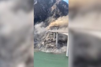 சீனாவில் திடீரென விழுந்த 758மீட்டர் பாலத்தின் ஒரு பகுதி.(Video)