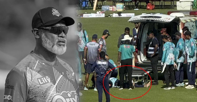 கில்ஹெட் சர்வதேச கிரிக்கெட் மைதானத்தில் டாக்கா கெப்பிட்டல்ஸ் அணியின் தொடக்க ஆட்டம் ஆரம்பமாவதற்கு சில நிமிடங்களுக்கு முன்பு திடீரென மைதானத்திலேயே மயங்கி சுருண்டு விழுந்துள்ளார்.
