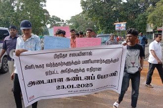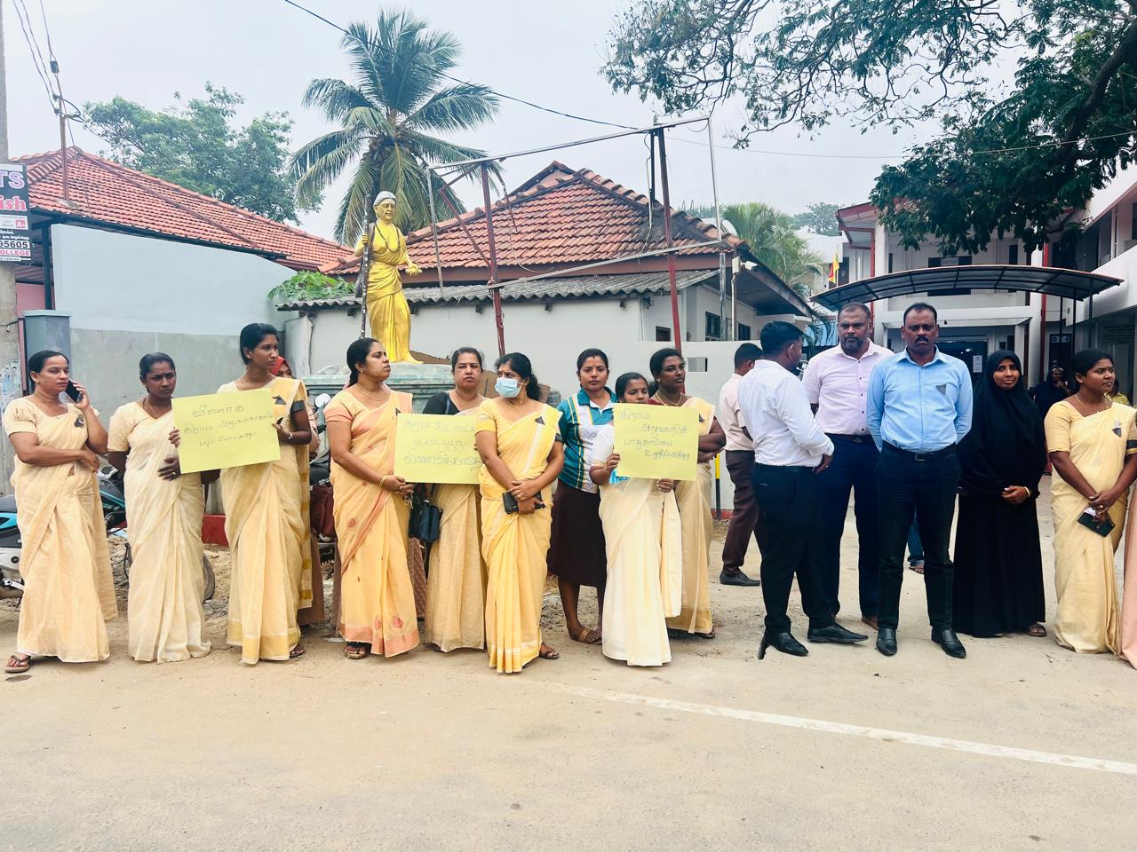 இதனால் மன்னார் நகர பிரதேச செயலகத்திற்கு முன்னாள் பிரதேச செயலக உத்தியோகத்தர்கள் மற்றும் கிராம அலுவலர்கள் ஒன்று கூடி கருப்பு பட்டி அணிந்து பதாகைகளை ஏந்தியவாறு எதிர்ப்பை தெரிவித்தனர்.