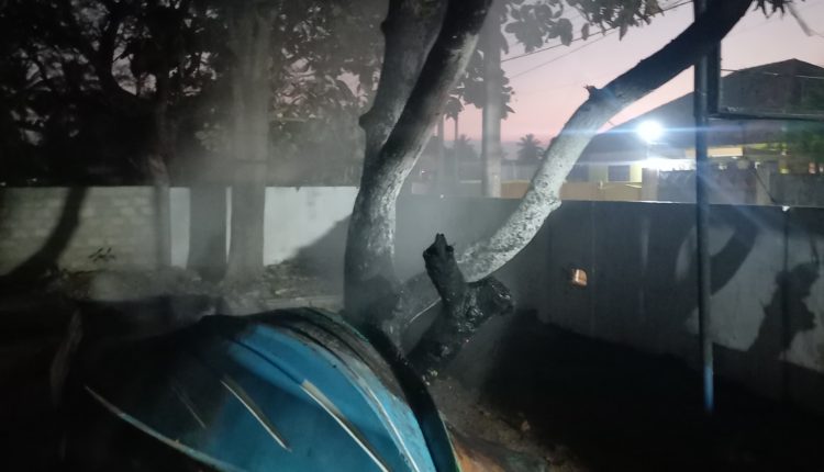 பொலிஸ் நிலைய வளாகத்தில் காணப்பட்ட குப்பைகளை இன்றைய தினம் திங்கட்கிழமை மாலை வேளை பொலிஸார் எரித்த வேளை அந்த தீ பரவி பெயர் பலகை , படகு மற்றும் அருகில் நின்ற மா மரம் என்வற்றில் பற்றி எரிந்தது.