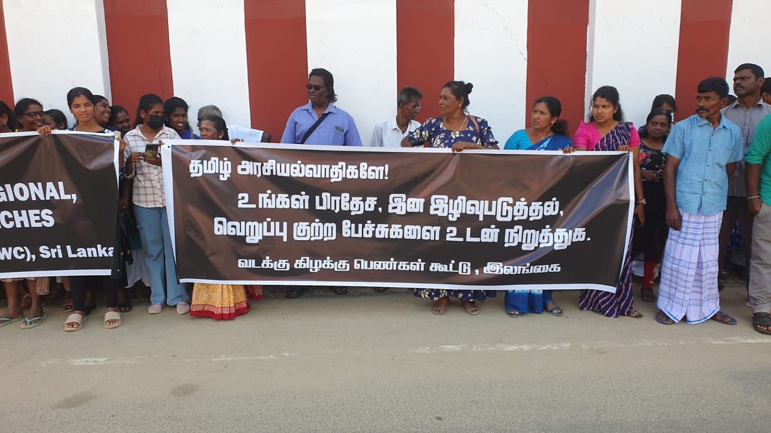 யாழ்ப்பாணம் நல்லை ஆதீனத்திற்கு முன்பாக இன்று காலை ஒன்றுகூடிய போராட்டக்காரர்கள், இனவாதம் மற்றும் பிரதேச, சாதிய வாதங்களை பேசும் தமிழ் அரசியல்வாதிகளுக்கு எதிராக கோஷங்களை எழுப்பினர்.