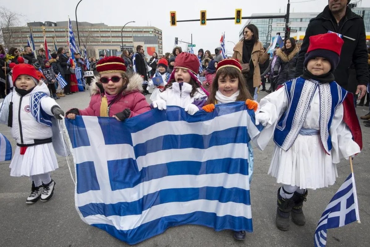 மொன்றியலில் உள்ள பல்வேறு கிரேக்கப் பாடசாலைகளைச் சேர்ந்த நூற்றுக்கணக்கான மாணவர்கள் கனேடிய மற்றும் கிரேக்கக் கொடிகளை ஏந்தி உற்சாகமாக ஊர்வலத்தில் பங்கேற்றனர்.